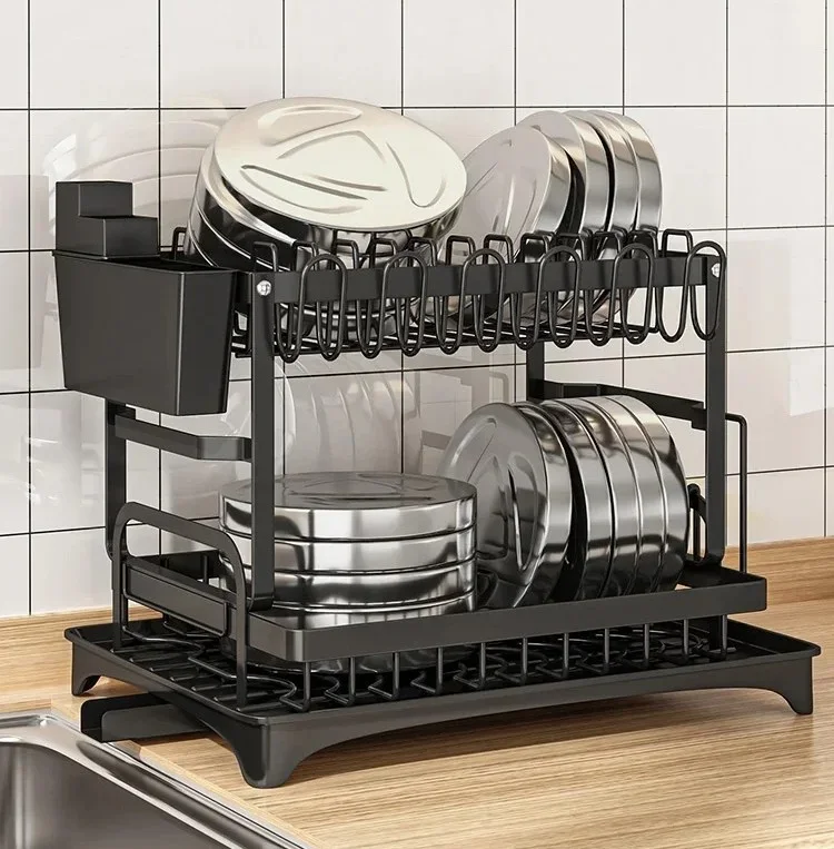 المطبخ ديالك عامر بالصحون وما لقيتيش فين تنشفهم؟ هاد منظم الصحون بطابقين غادي يعاونك ترتب الصحون والمقالي ديالك ويخلي المطبخ ديالك منظم ونقي.